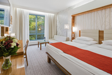 Ориентация на тихую сторону обеспечивает спокойный сон после процедур. В некоторых номерах возможно размещение с раздельными кроватями.